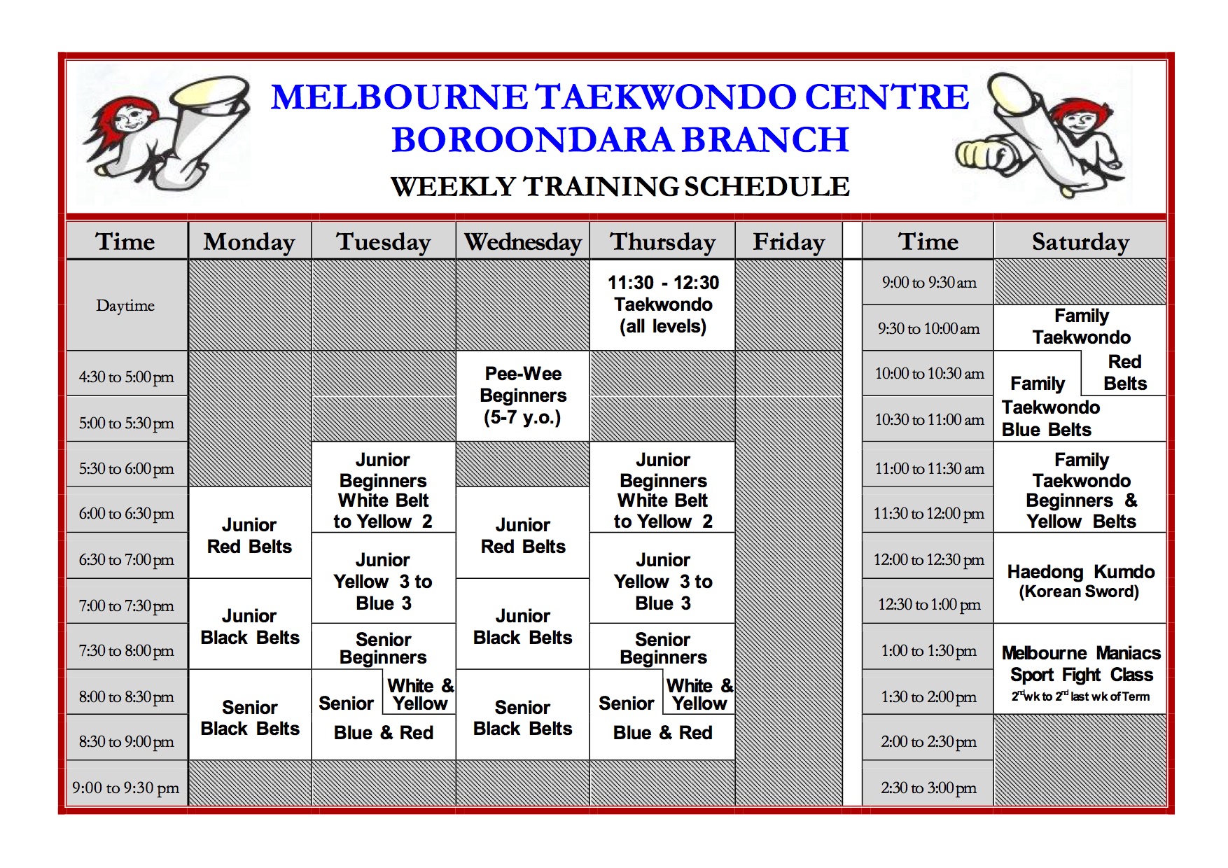 Training Schedule Poster